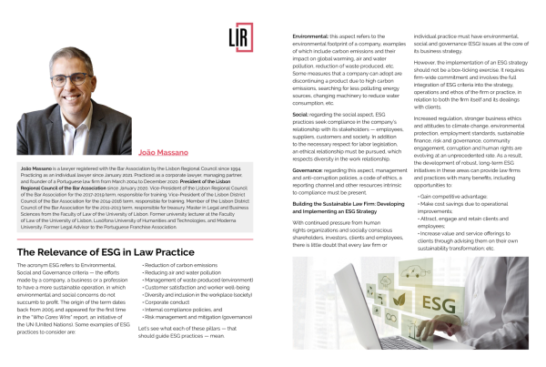 Over the past 17 years, he has also taught at the Faculty of Law of the University of Lisbon, Lusófona University and Universidade Moderna. He has been involved with the Lisbon Regional Council of the Portuguese Bar since 2011, serving as president for the past five years. He stood out during that time for the rapid digitalisation of the institution, introduced during the pandemic, including daily online training sessions to lawyers from the whole country. Another key moment was reviving the ceremony honouring colleagues with over 35 years in practice.